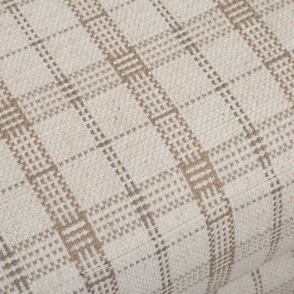 Enjoy a blend of comfort and sophistication with this swivel club chair, anchored by a sturdy solid wood plinth base in natural oak. Upholstered in a relaxed linen blend plaid showcasing beige and taupe shades, it offers both style and durability.