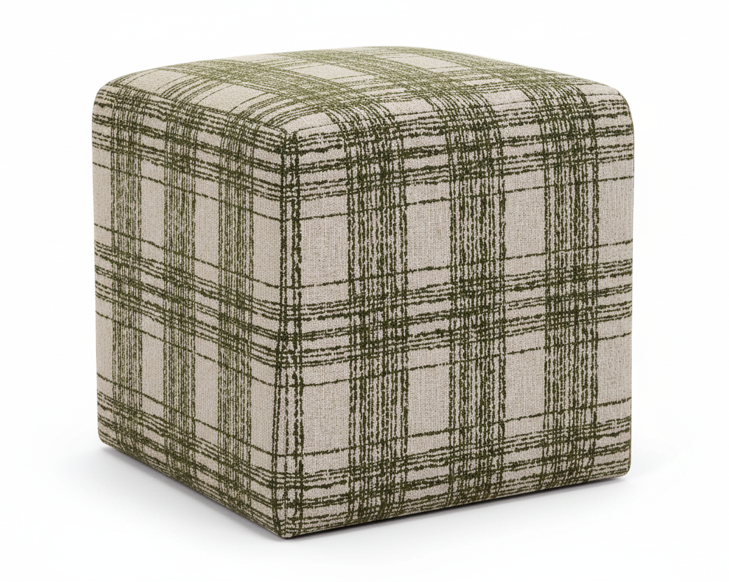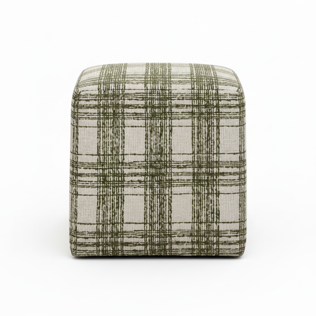 This versatile ottoman seamlessly transitions from decorative accent to practical seating, delivering both aesthetic appeal and functional comfort. Crafted with sumptuous chenille upholstery in an Ireland green plaid pattern, it brings sophisticated style and inviting texture to any room while providing a comfortable footrest or additional seating when needed.