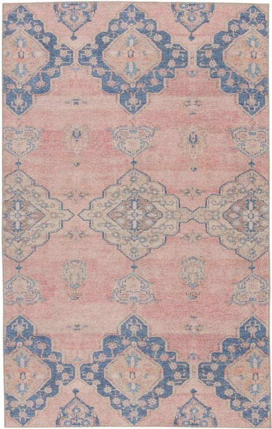 The vintage-inspired Kairos collection brings a playful and warm vibe to contemporary spaces. The Adalee rug features dusty pink and blue diamond medallions with subtle distressing for a romantic, elegantly worn look. This printed style offers the timelessness of a classic Turkish motif with the versatility and affordability of a power-loomed rug.