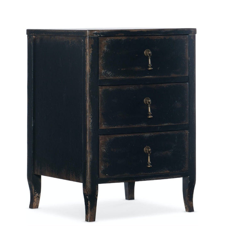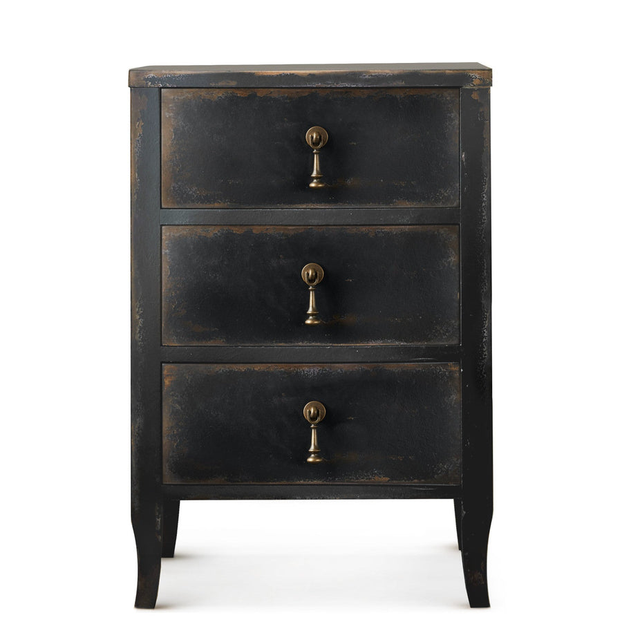 Reminiscent of a flea market find, this rustic 3-drawer telephone table is perfect for adding vintage charm beside your bed, family room chairs or even in a kitchen or hallway. Crafted of Poplar and Hardwood Solids with Maple Veneer, the table is finished in a exquisite soft black with multi-layering to appear it is aged gracefully through the decades.