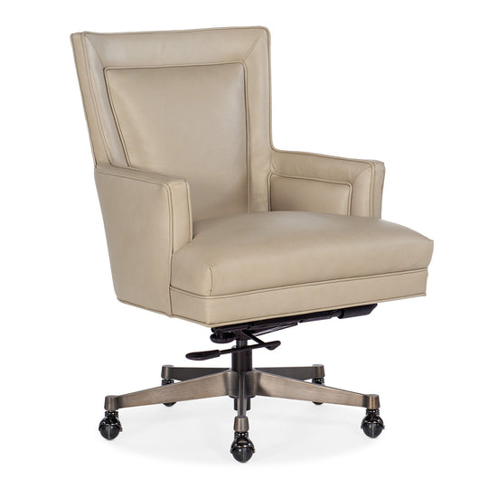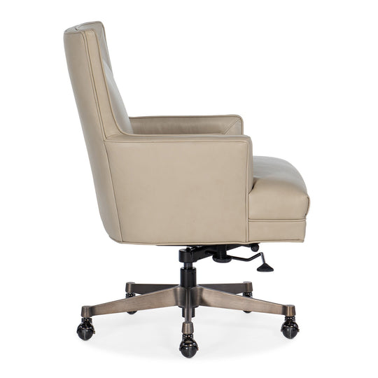 Boost comfort and productivity with the Rosa Executive Swivel Tilt Chair, featuring adjustable height, top-grain leather, a gunmetal base, and smooth casters.
