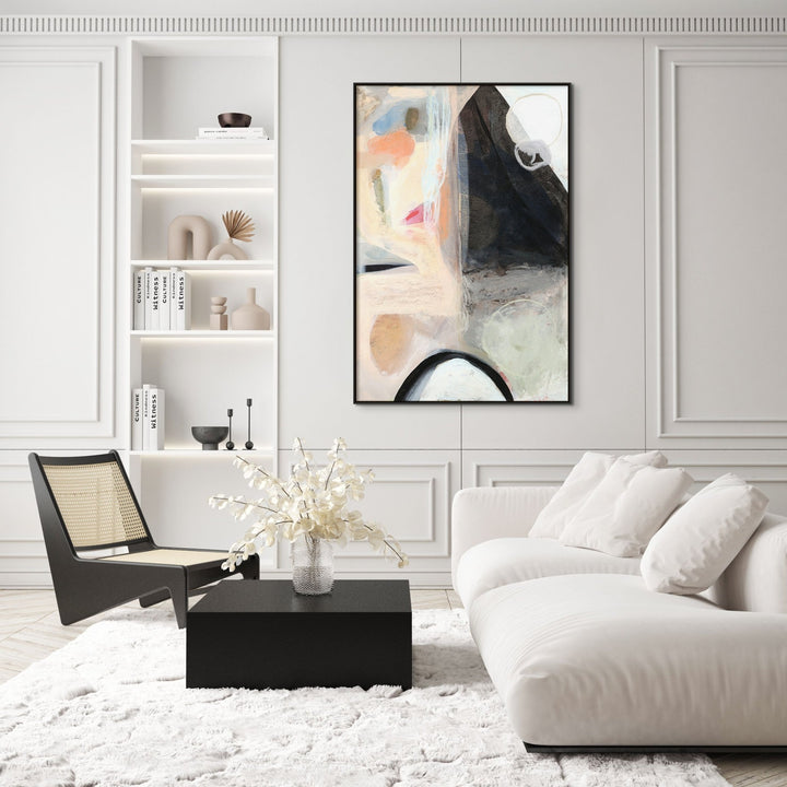 "Saj" abstract artwork by Athena Rose is printed on canvas with strokes of texture that follow the image to enhance the authentic feel of the piece. This gallery-wrapped giclee is hand stretched over 1.5" stretcher bar with your choice of optional frame finishes.