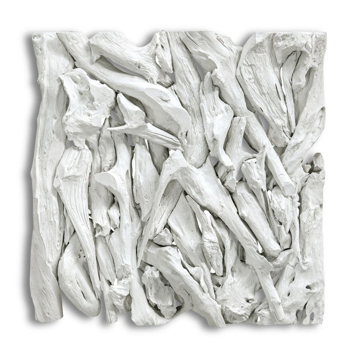 Artfully constructed from teak branches, this wood wall tile features a casual coastal style in a white washed finish.