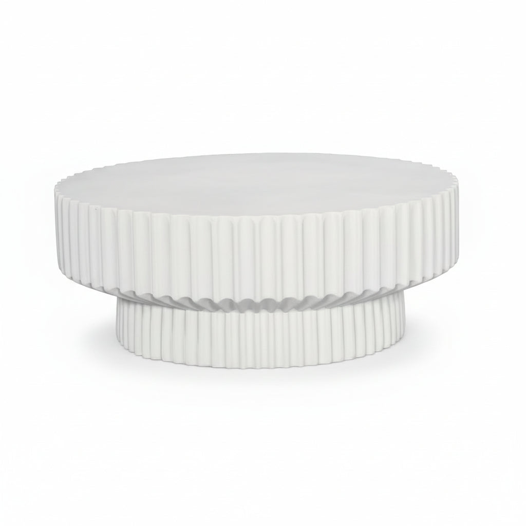 Sculptural, fluted, and full of character. Crafted from a mix of resin and crushed stone, the Vetra Coffee Table makes a bold yet versatile statement. Its pleated silhouette adds texture and movement, anchoring the room with quiet drama. Generous in scale, striking in form.