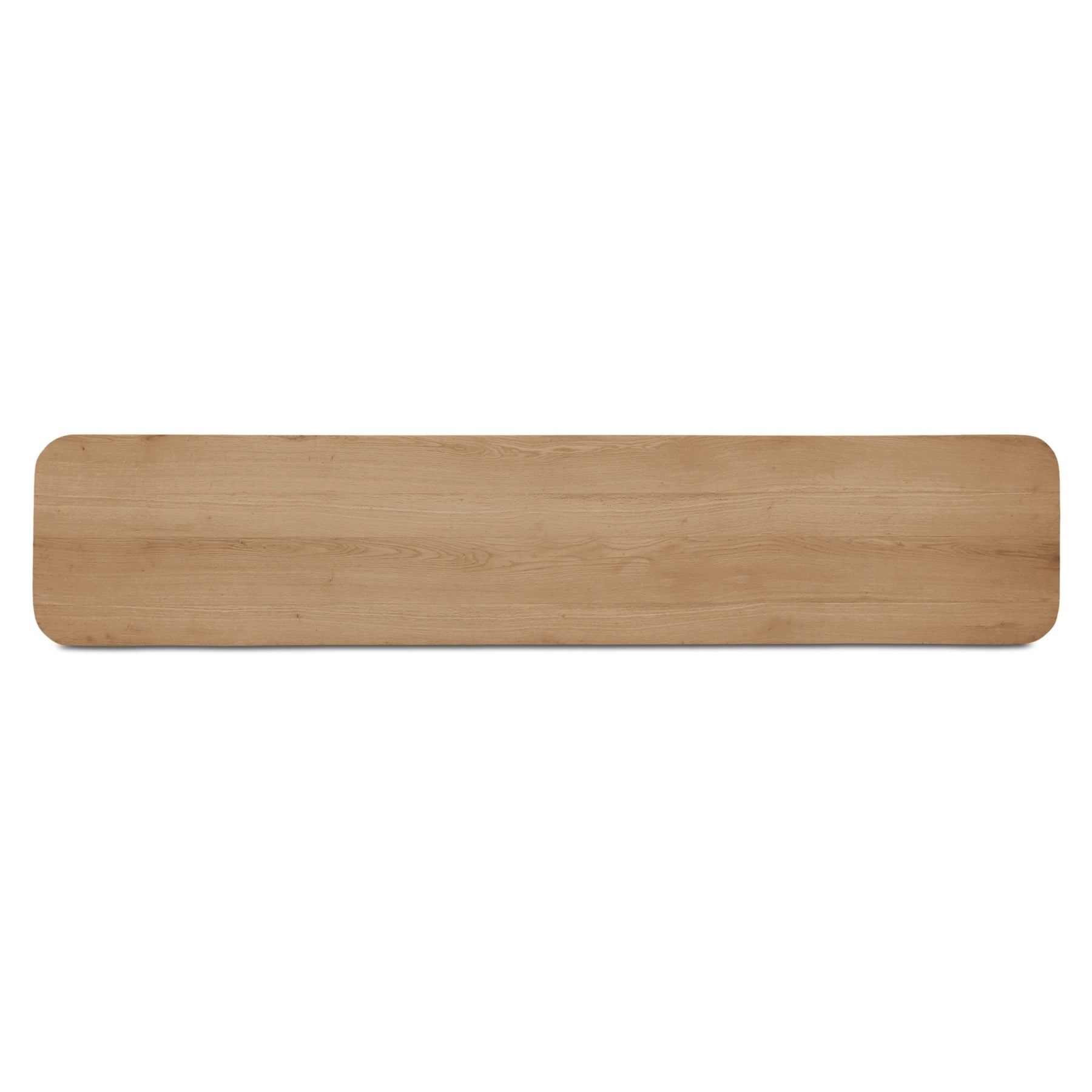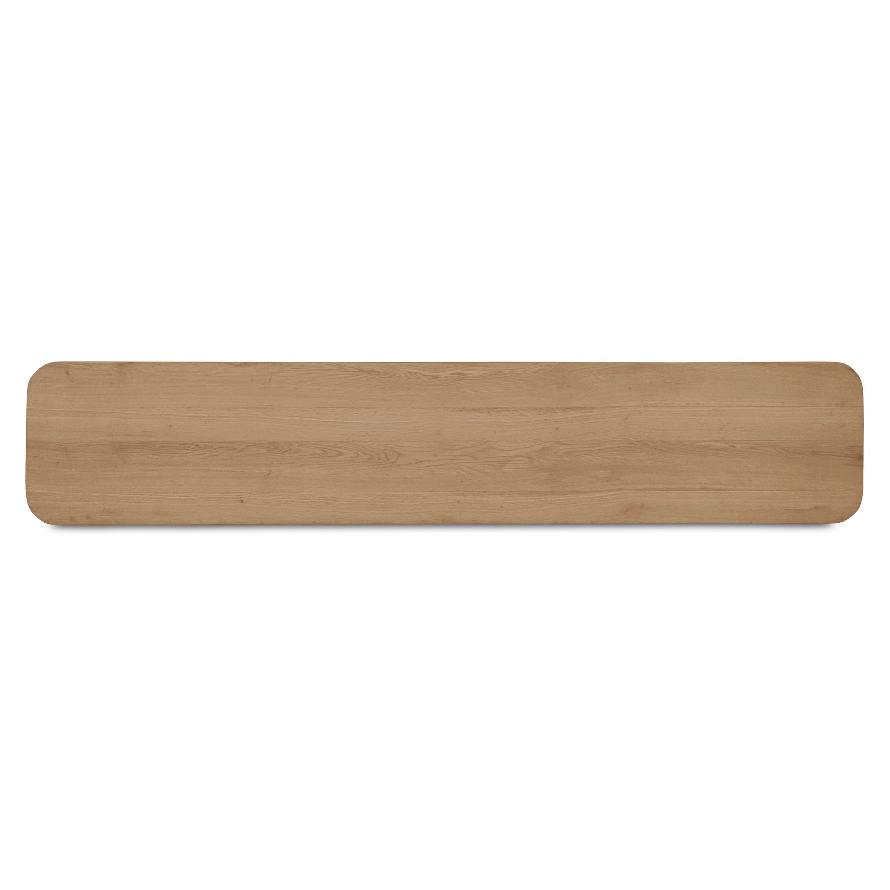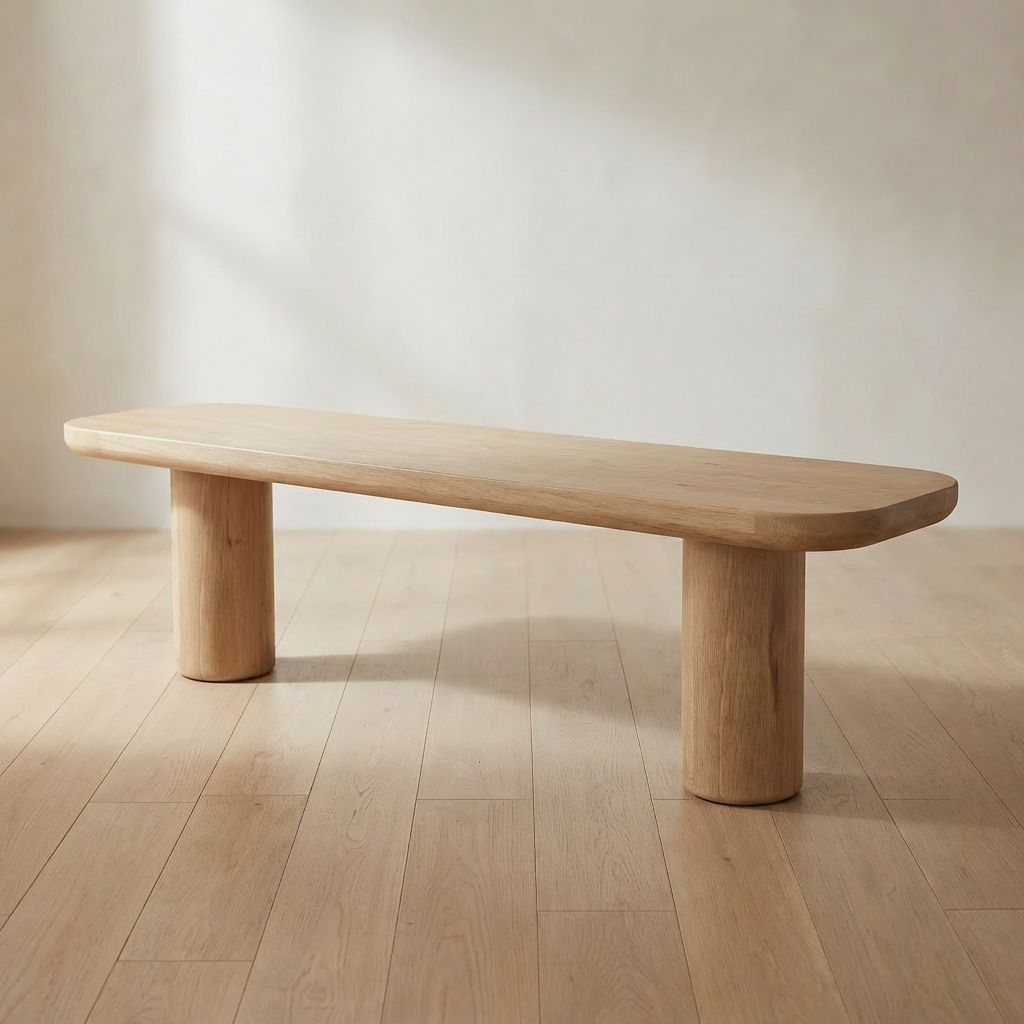 The Anders dining bench's minimalist silhouette, featuring a half-bullnose edge and sleek column legs, offers visual lightness that enhances various interior styles. Crafted from FSC-certified oak, each bench tells a unique story through distinct grain patterns and knots. This versatile piece seamlessly adapts to any setting with its timeless elegance and sustainable design.
