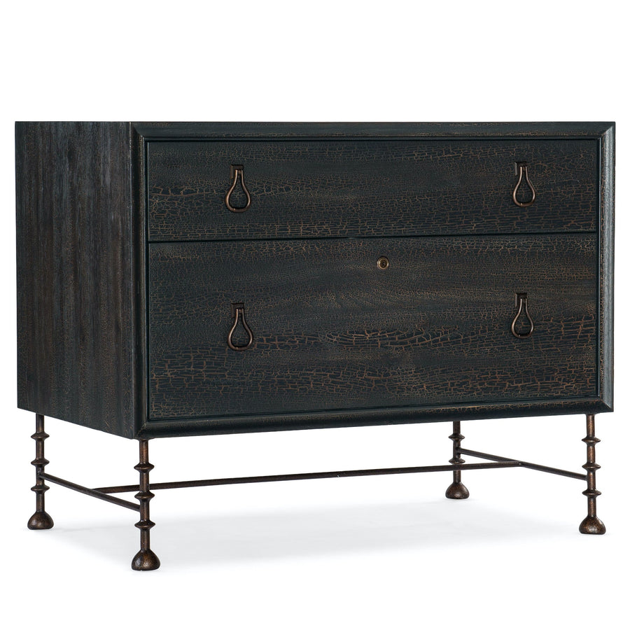 Rustic, organic and comforting, the Big Sky Lateral File is finished in Charred Timber, evoking the restorative and rugged beauty of a forest. Crafted of Pecky Hickory Veneers and metal with a solid-wood edged top, the chest has two drawers, including a top utility drawer and a bottom locking file drawer with a Pendaflex letter/legal system.