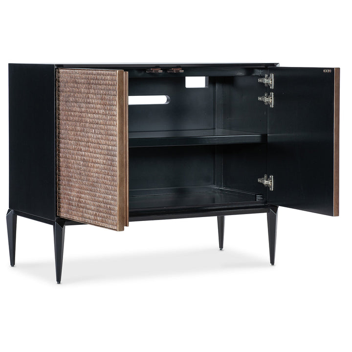 • Finish : Black finished exterior and interior with contrasting brown carved door fronts