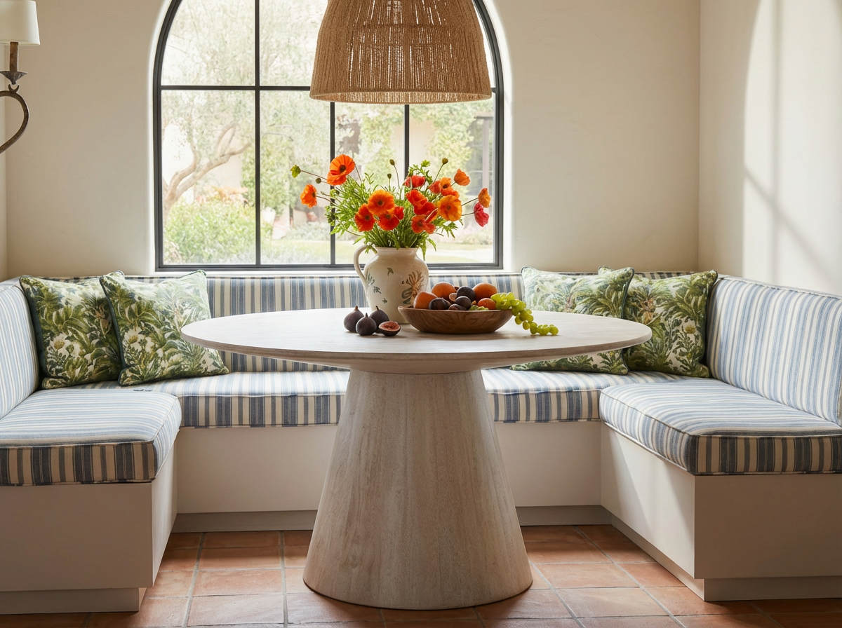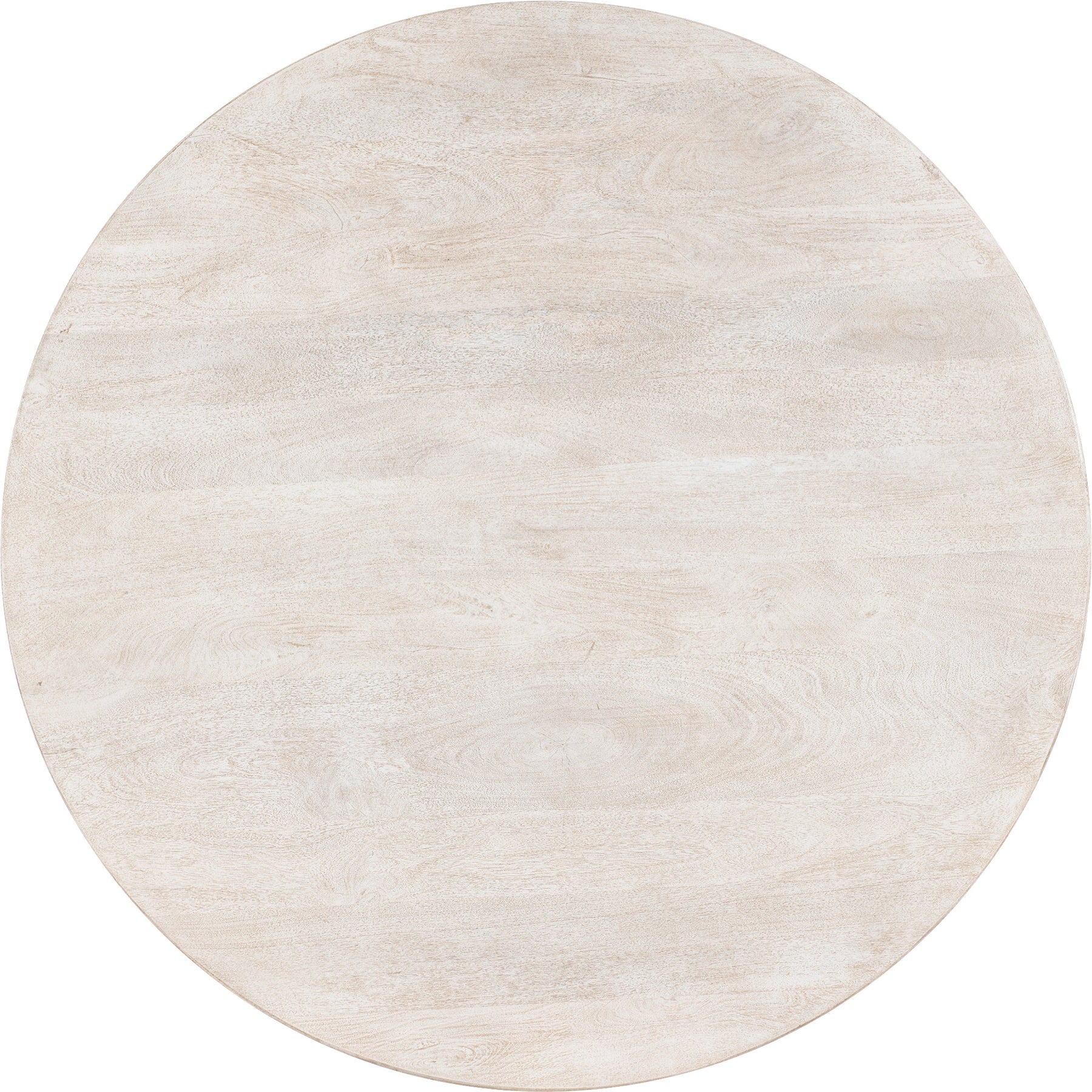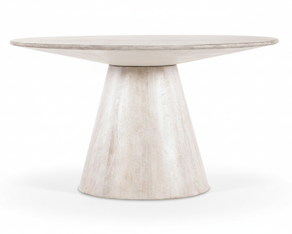 This striking round pedestal dining table showcases the distinctive character of Mango Wood with understated elegance and organic texture. Perfect for casual dining spaces seeking authentic craftsmanship and natural beauty.