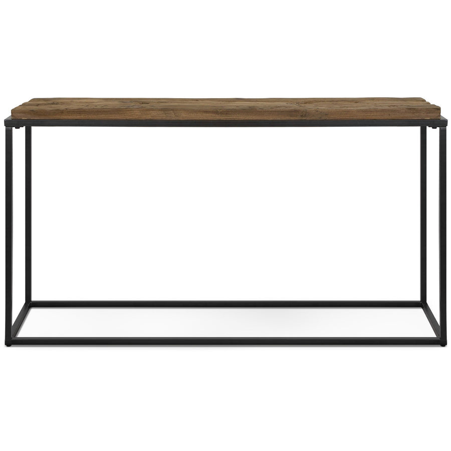 This rustic console features an iron frame in satin black topped by a natural reclaimed wood top.