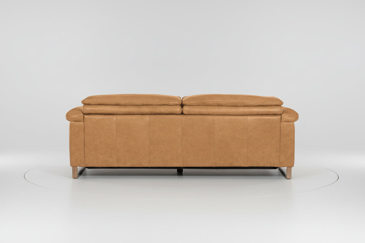 MARIA LUXURY 2-SEAT SOFA WITH CARAMEL LEATHER & WOOD FEET