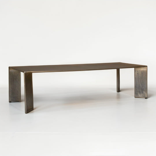 The Reade Coffee Table showcases an antique brass finish on durable cast aluminum. Its smooth sandy texture and modern aesthetic make it an excellent addition to any contemporary outdoor setting. Designed for versatile use, it is ideal for both indoor and outdoor environments.