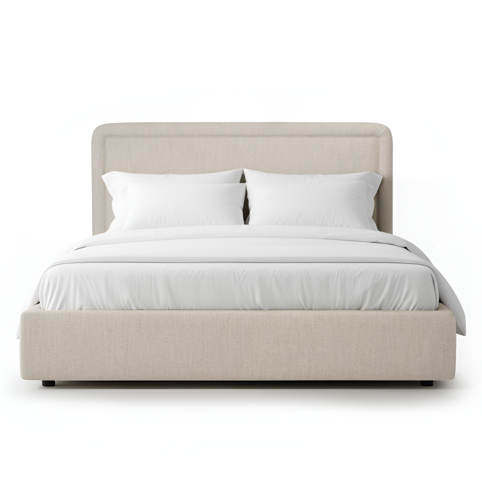 Rounded design: Oversized headboard with curved edges and piped detailing creates a soft yet tailored silhouette with modern appeal.