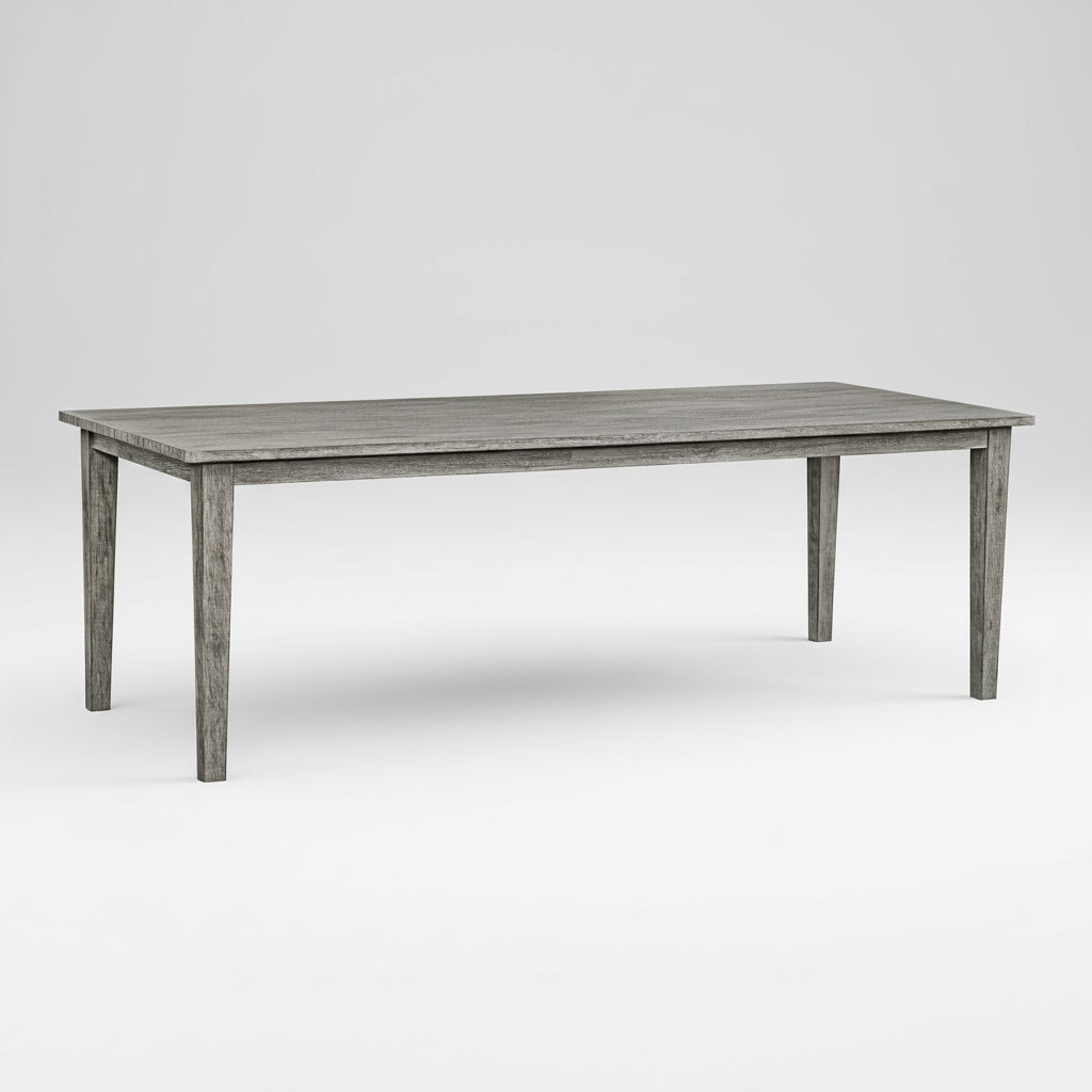 Inspired by traditional farmhouse design, the Forsyth Dining Table combines rustic elegance with expert craftsmanship. Made from solid mahogany and treated with a weathered dark gray finish, it highlights the wood's natural grain and enduring appeal.