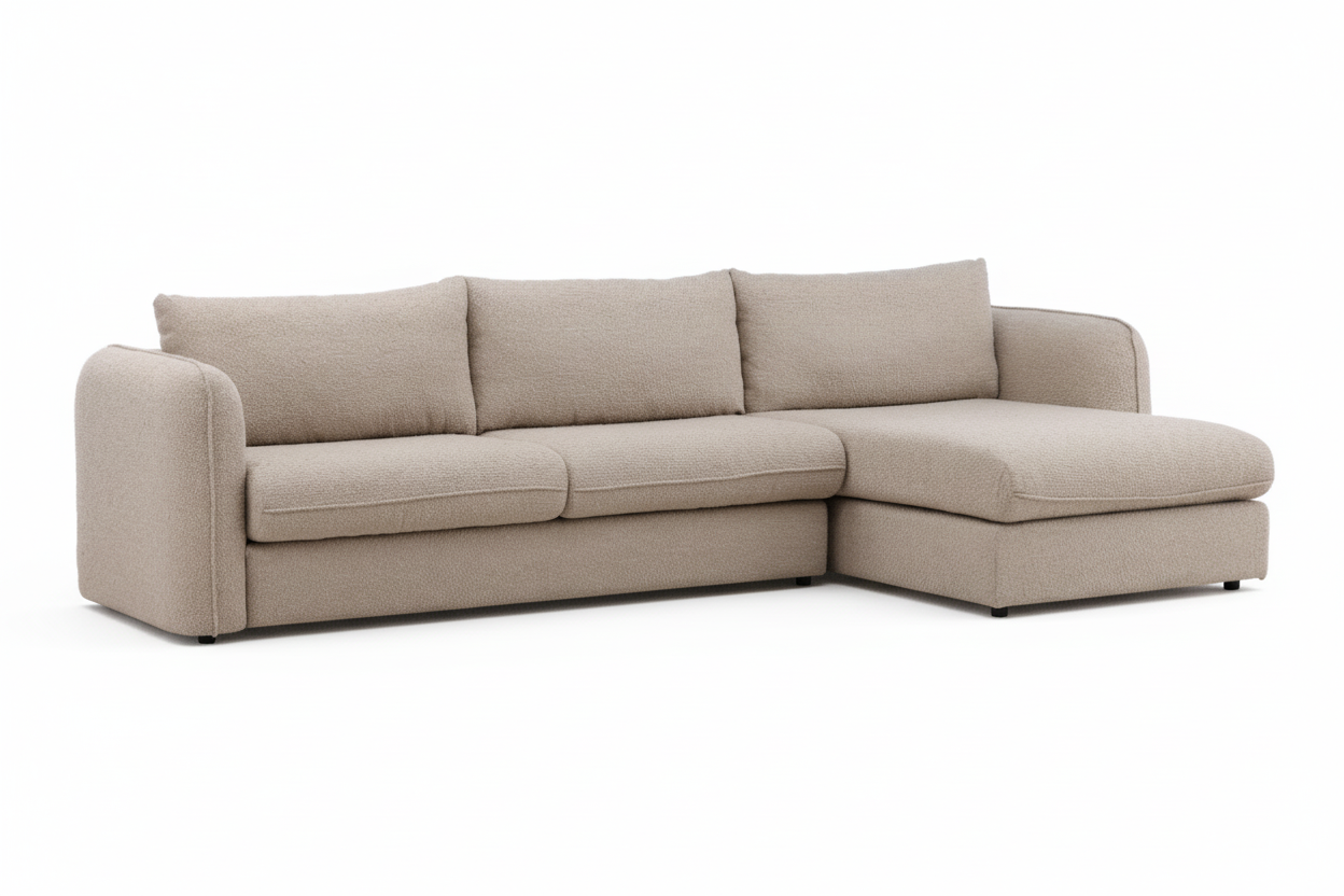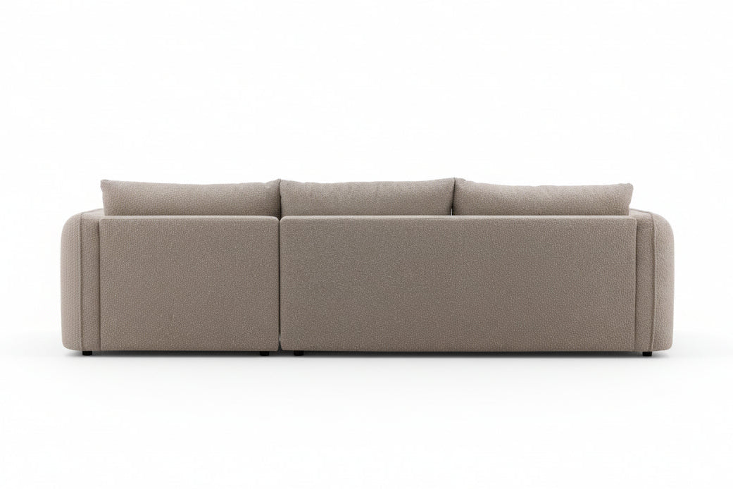 The Torre Chaise Sectional offers a blend of modern style and luxurious comfort. It features plush, well-proportioned cushions and a sleek design. The handcrafted hardwood frame and polyester upholstery ensure durability and elegance.