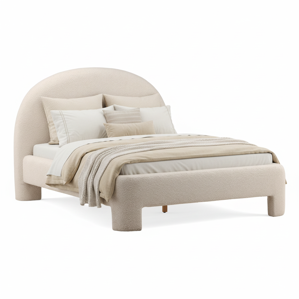 Soft curves meet everyday luxury in the Amira Bed. Fully upholstered in performance boucle fabric and built with thick, rounded foam padding, Amira brings a plush, modern calm to any bedroom.