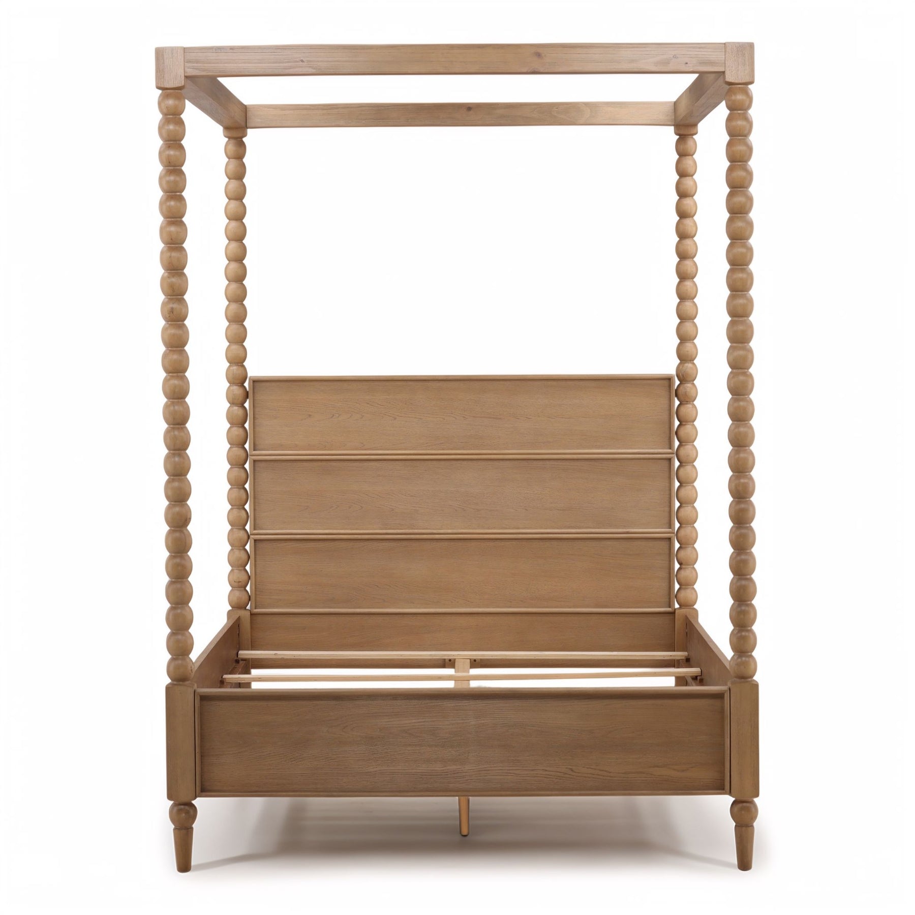 Crafted with meticulous attention to detail, this four-poster bed showcases a refined beaded frame in natural wood that seamlessly blends contemporary and rustic aesthetics. The architectural silhouette delivers sophisticated visual interest while maintaining the understated elegance characteristic of farmhouse design, making it an enduring foundation piece for any bedroom sanctuary.