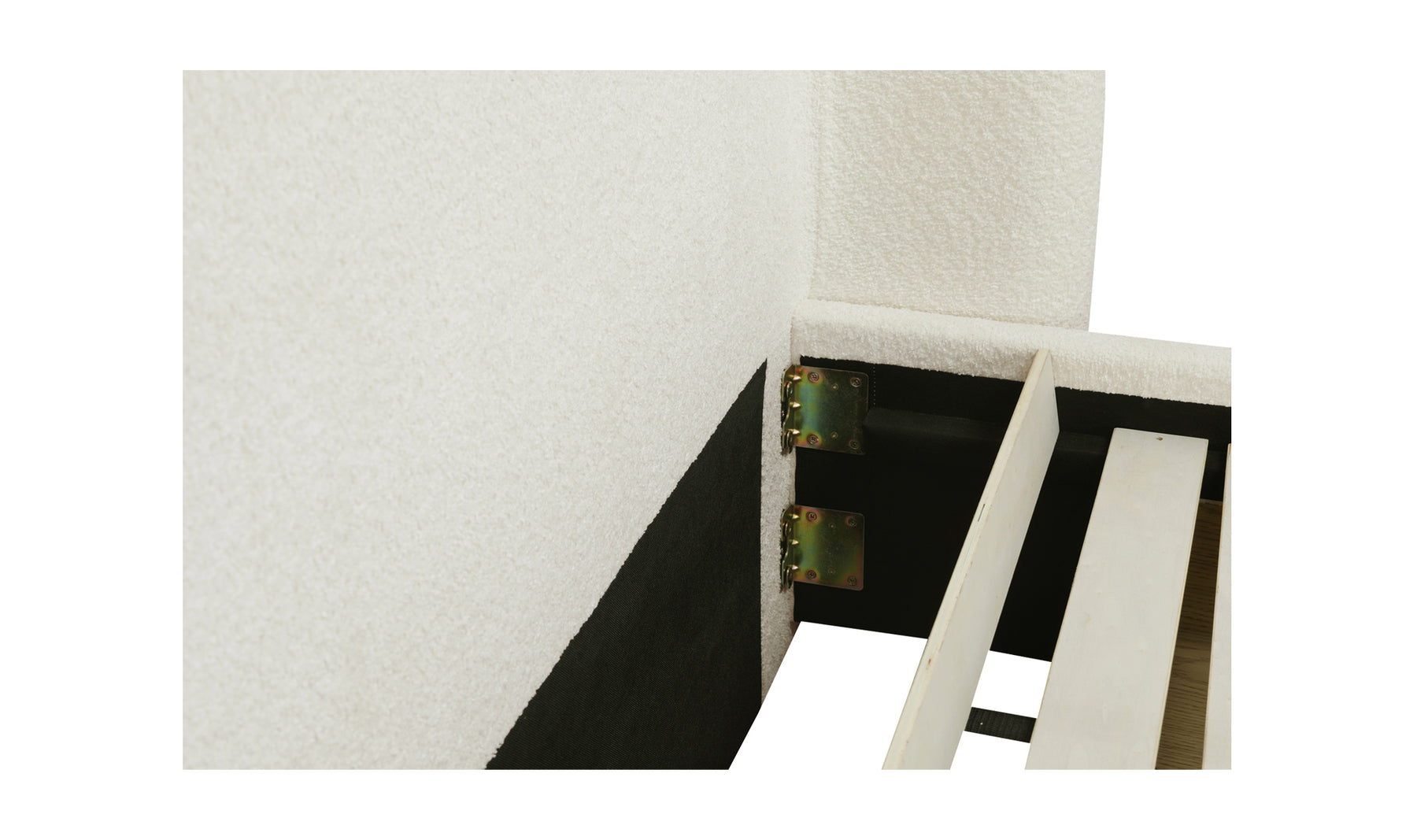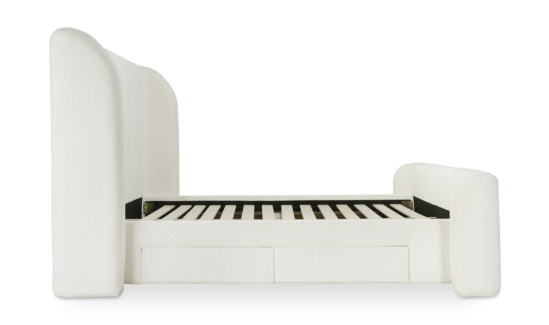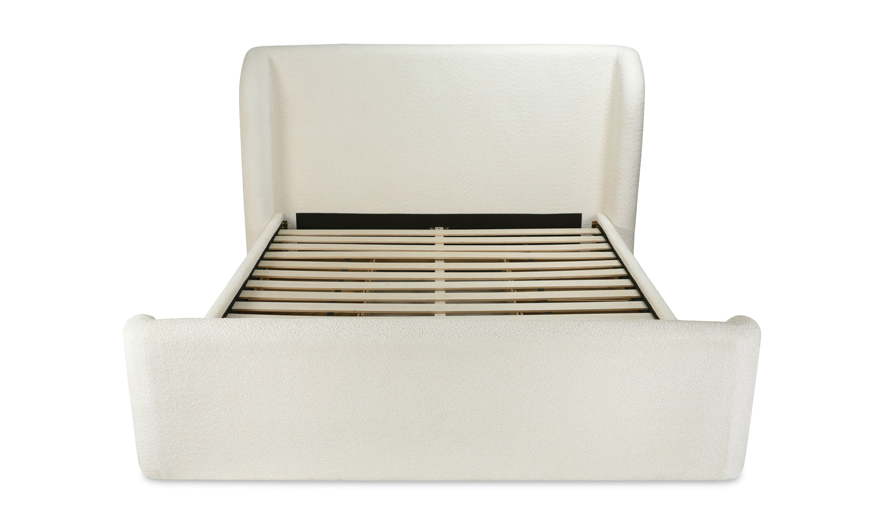 Wrapped Comfort: Headboard and footboard form an embracing frame with padded panels and soft lines, creating a grounded centerpiece that encourages intentional unwinding and everyday relaxation.