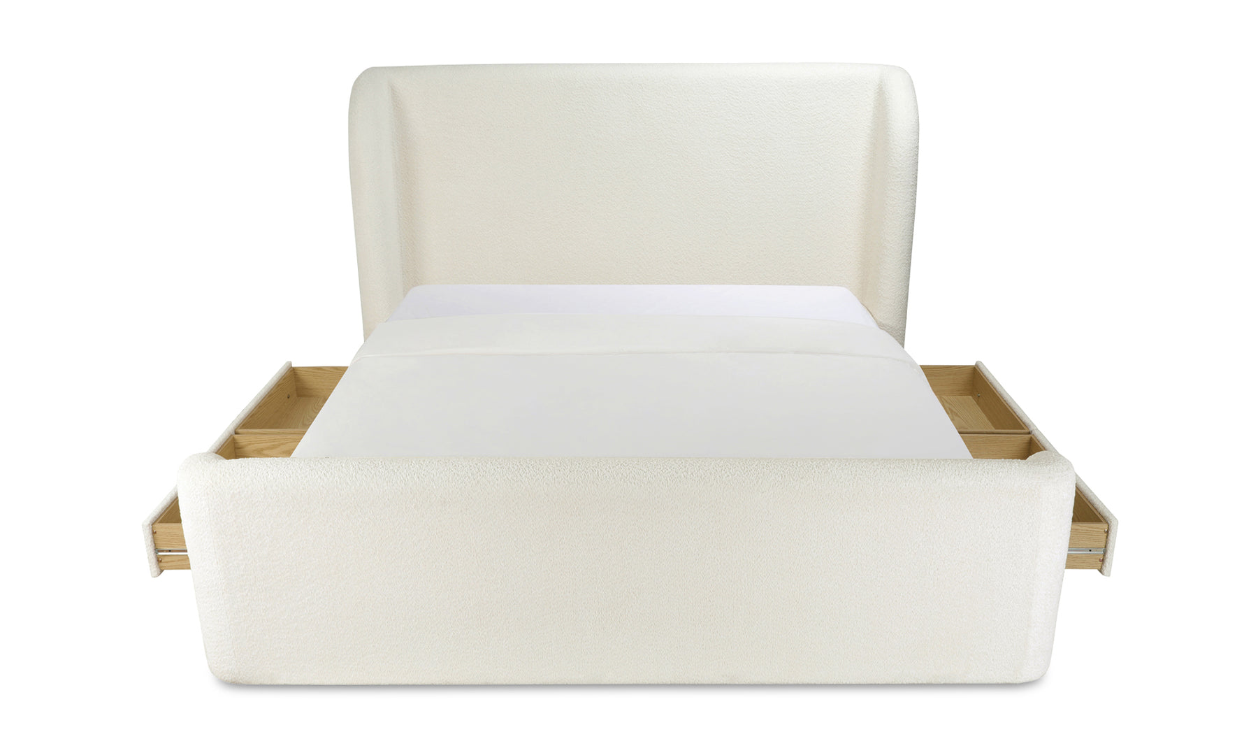Everyday Storage: Integrated drawers provide ample space for linens and seasonal pieces, keeping the bedroom organized, clutter-free, and calm for effortless routines and restful sleep.