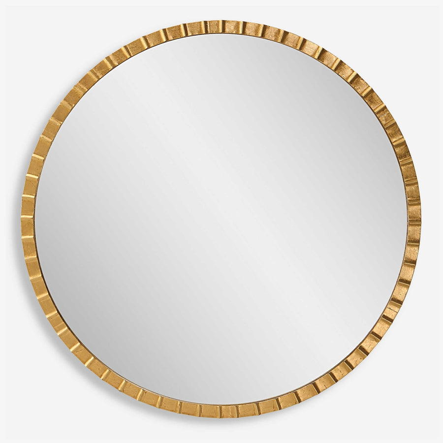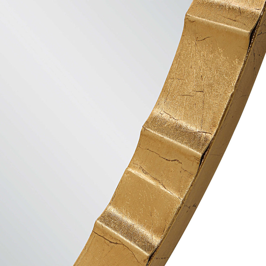 Constructed from hand forged iron with noticeable raised ridges for a touch of industrial influence, finished in a metallic gold leaf finish with light distressing.