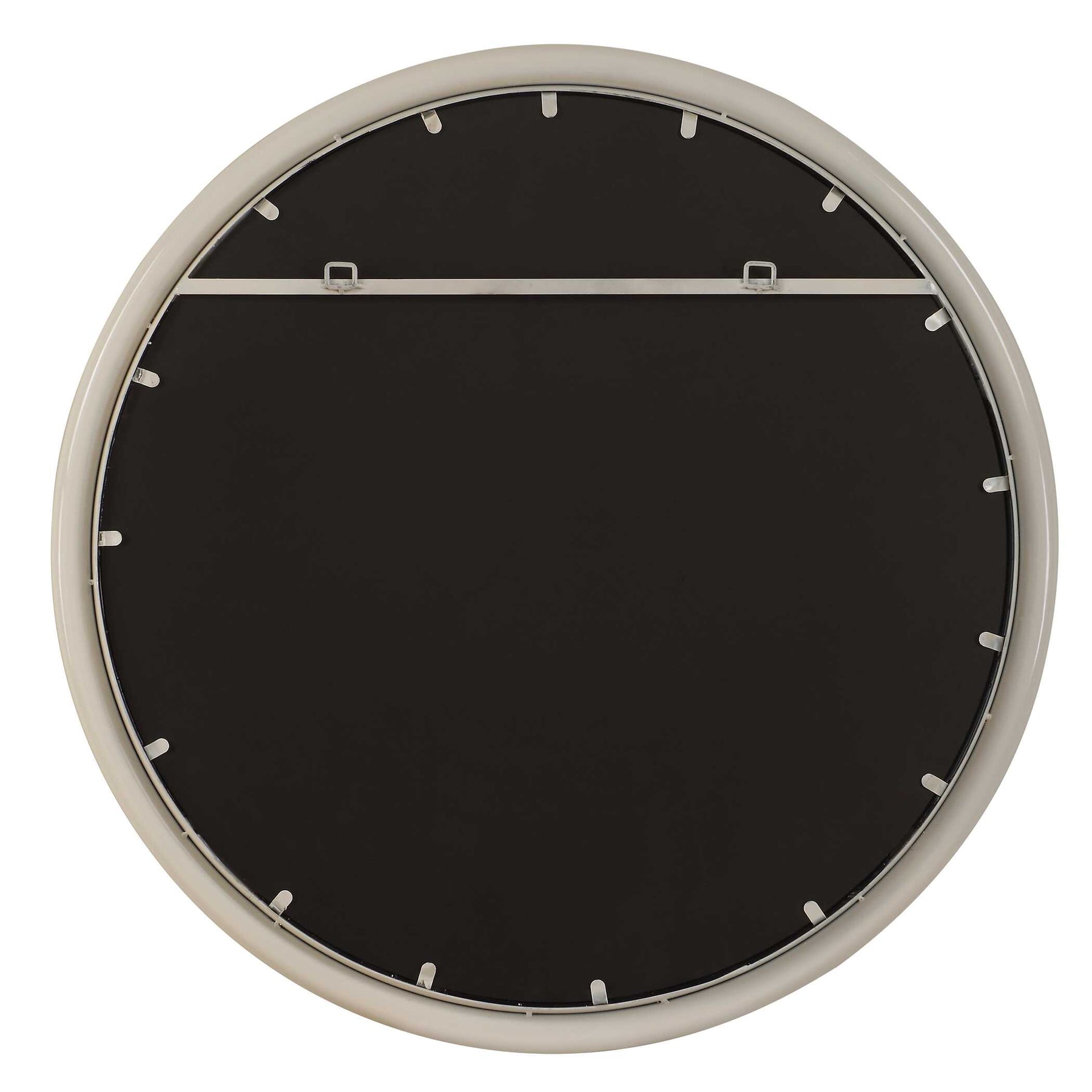 The Florian Round Mirror honors traditional design with its elegant simplicity. It showcases a smooth, rounded iron frame coated in a high gloss warm white finish, blending classic appeal with modern refinement.