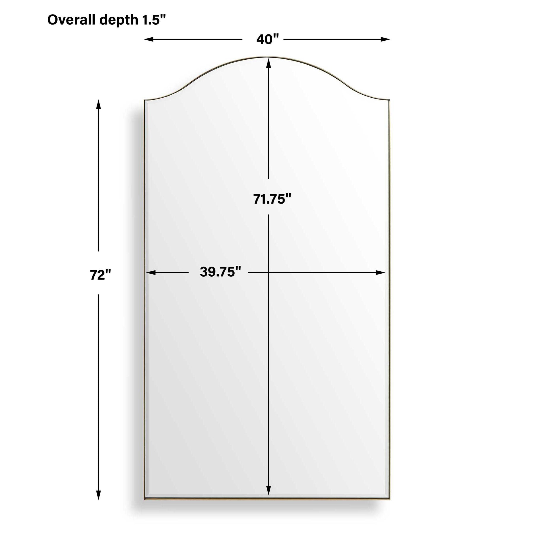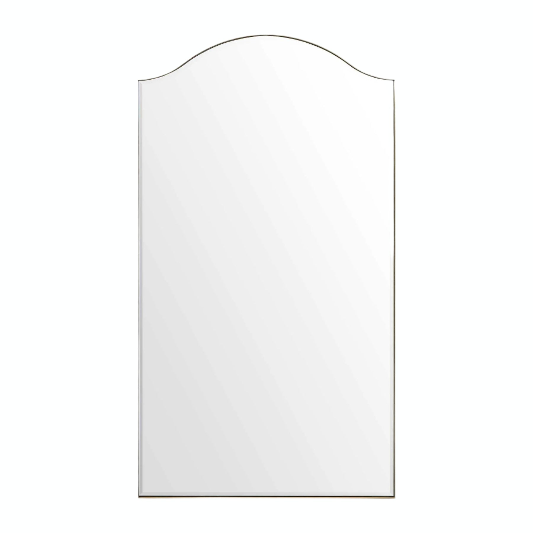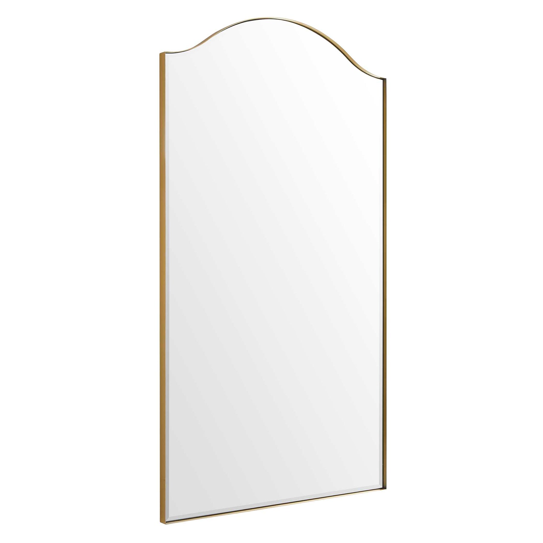 The Mallorca Mirror showcases enduring sophistication through its streamlined stainless steel frame and uniquely feminine shape, complemented by a warm, brushed brass plated finish.