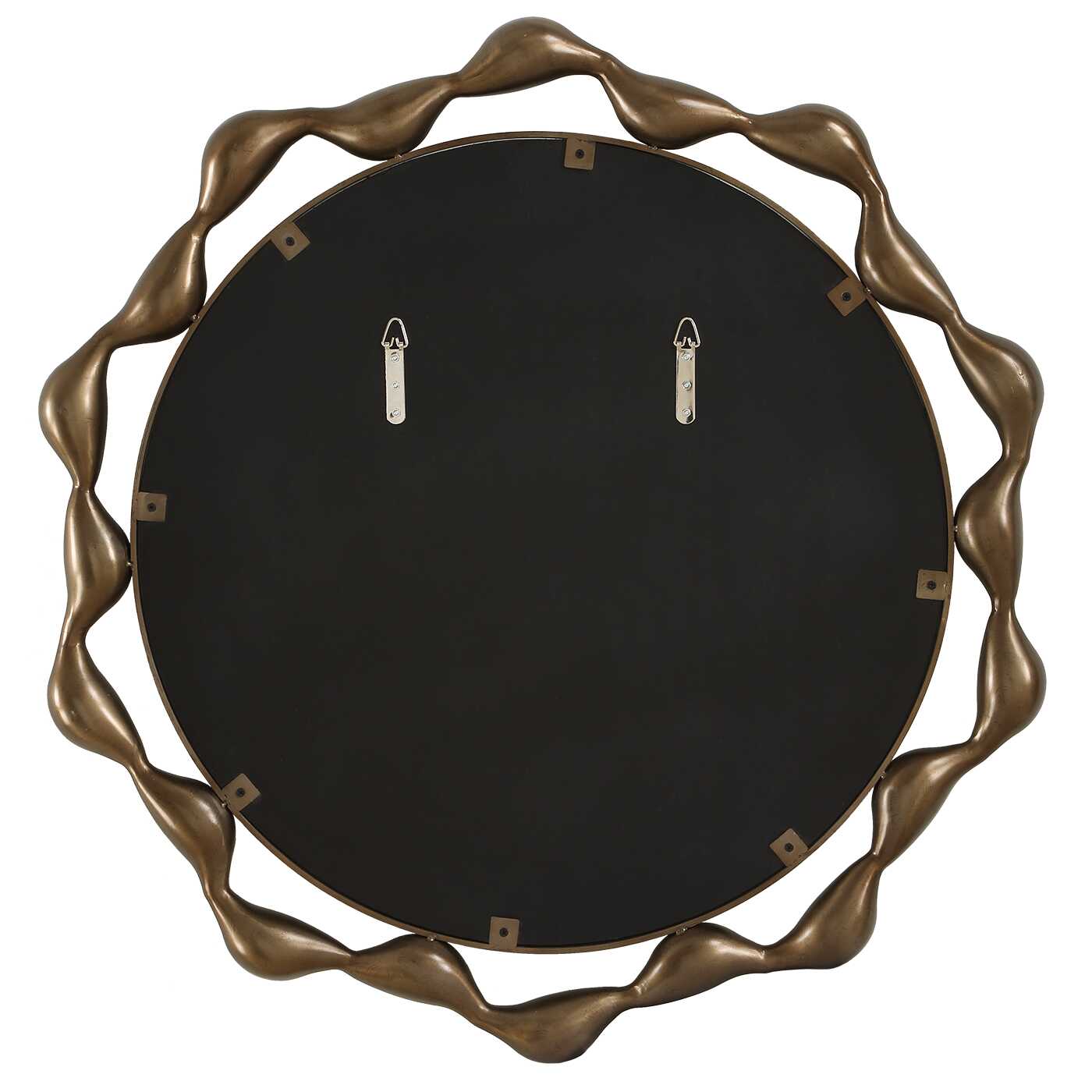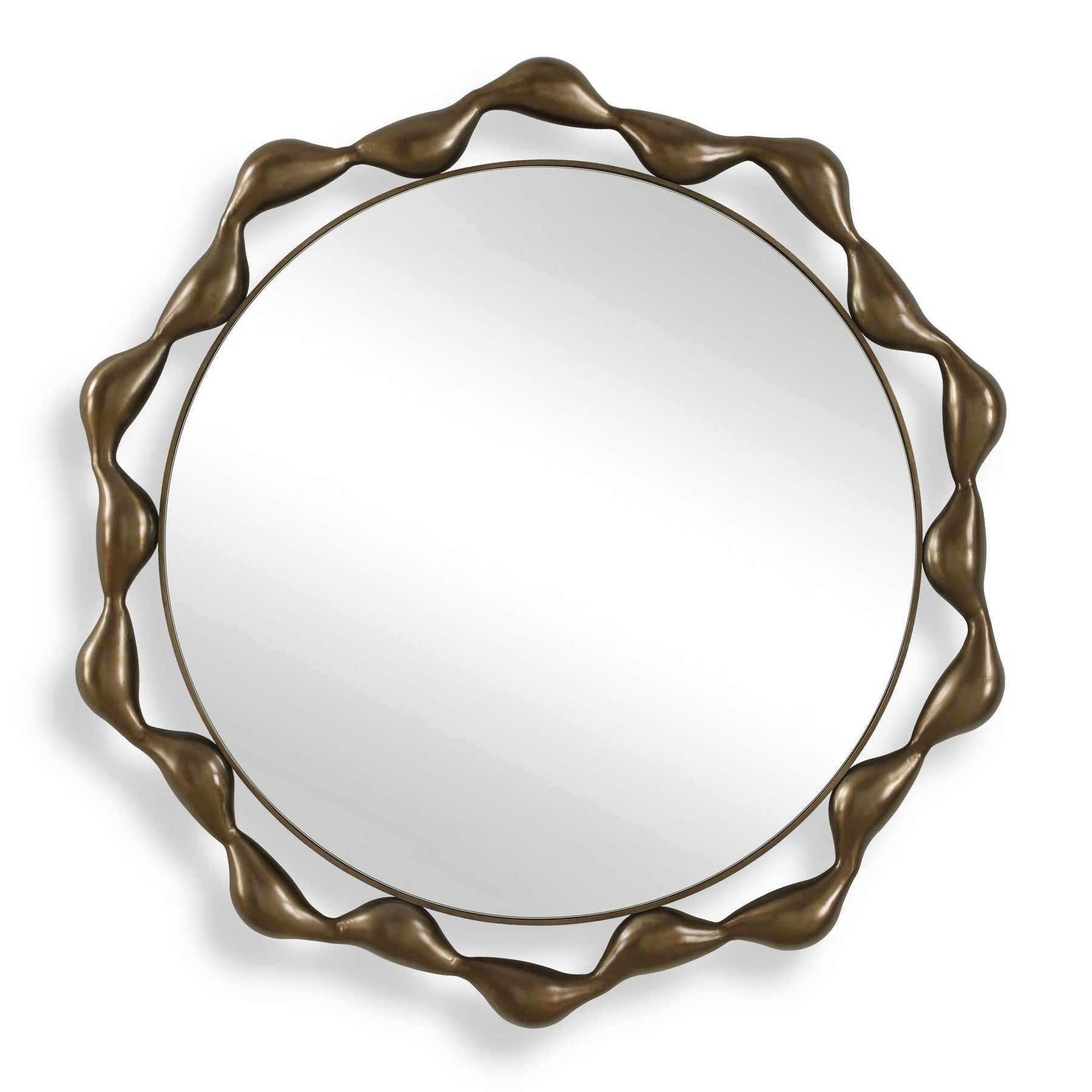 A striking circular mirror that commands presence through its distinctive sculptural form. Constructed from cast iron and finished in warm bronze plating, this piece combines functional elegance with artistic character, making it an exceptional focal point for any interior space.