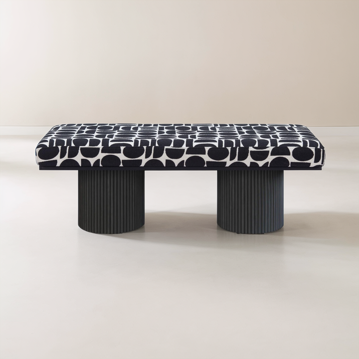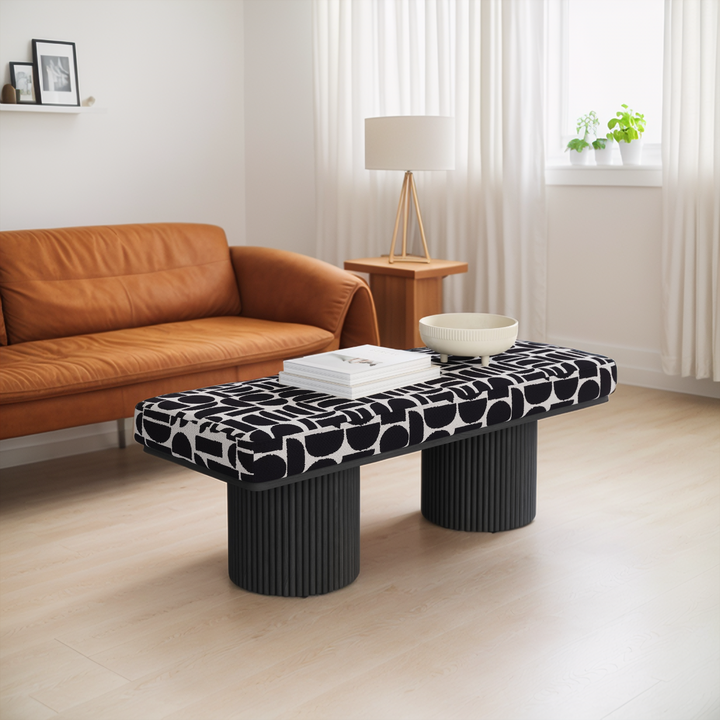 The Geo Bench blends comfy fabric with sturdy wood for a stylish and durable seat. Its sleek black and white design adds a chic vibe to any room, making it perfect for lounging or adding flair. Cozy, cool, and totally versatile!