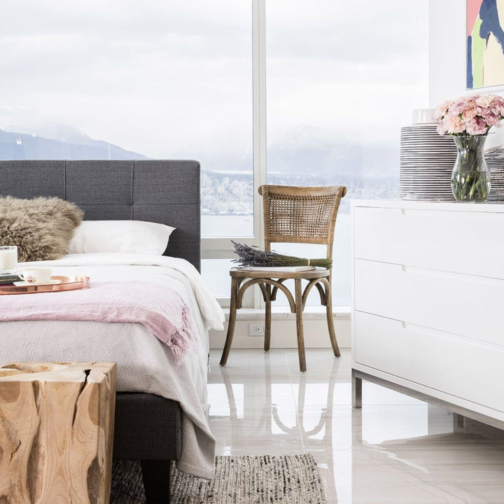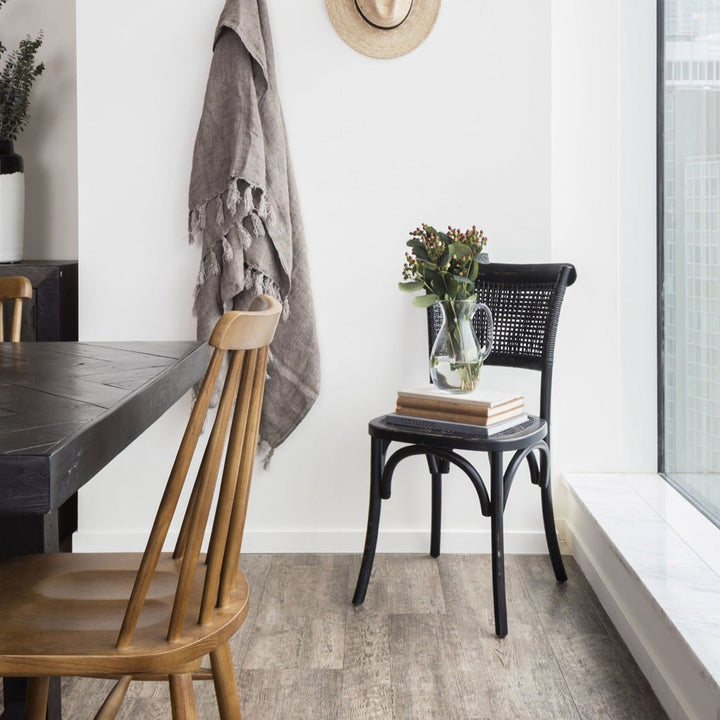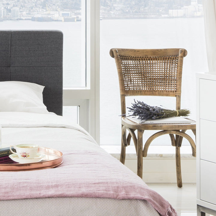 Reminiscent of a flea market find, the Churchill dining chair features a solid elm frame and rattan seat perfect for the vintage classic enthusiast.
