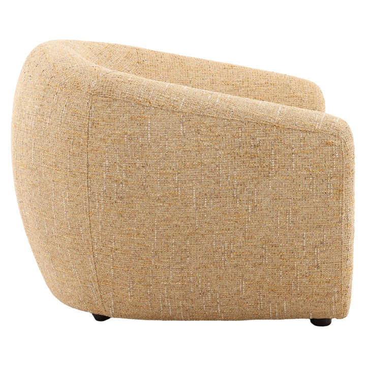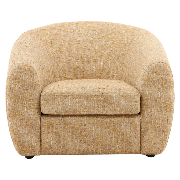 Meet modern comfort. Clean curves, impeccable tailoring and a soft, in a textured honey-beige toned chenille fabric with subtle highs and lows throughout bring an elevated, vintage European-inspired look to this over-sized arm chair.