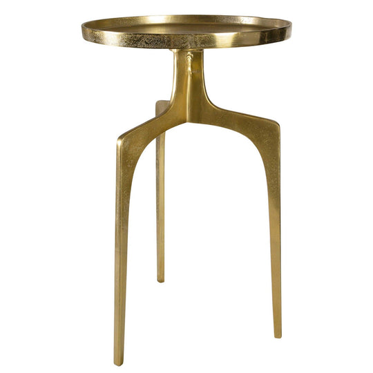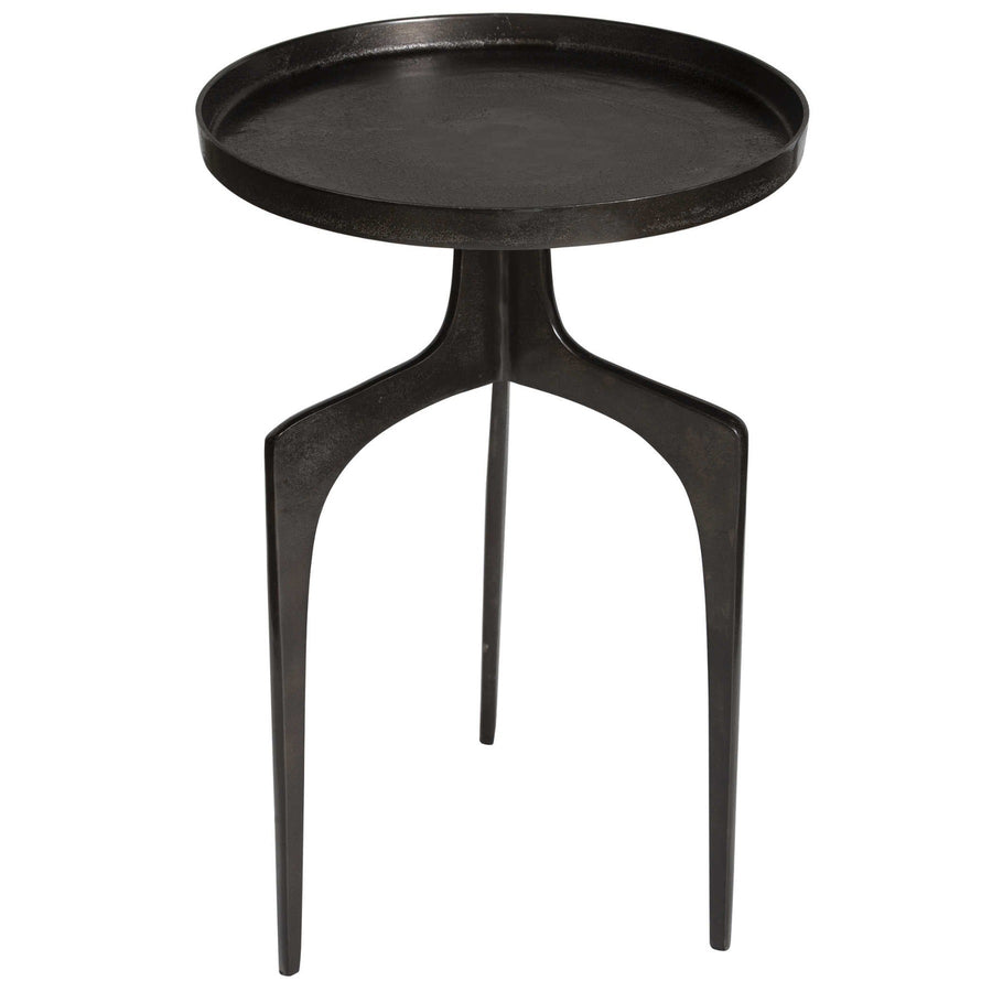 antique BronzeProviding an organic global feel, this cast aluminum accent table features a shapely curved base and round top, finished in a textured soft gold, nickel, or bronze.