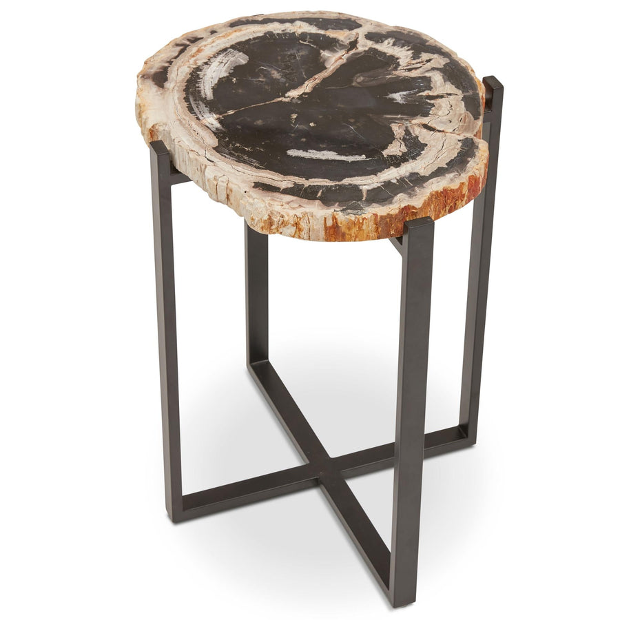 • Material : Solid Natural Edge Petrified Wood Slice, Powder Coated Steel
